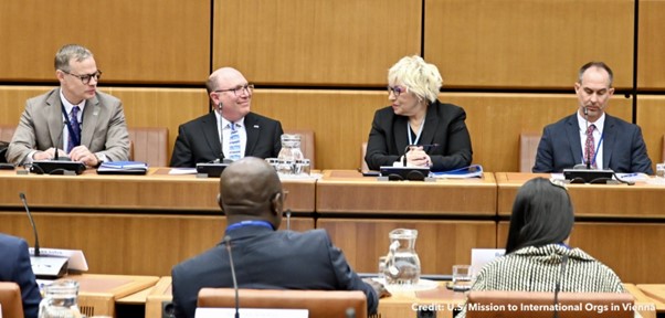 Mr. Howard Solomon, Chargé d'Affaires ad interim, Permanent Mission of the United States of America to the United Nations (Vienna) thanked the participants for their engagement and emphasized the need for collective commitment to strengthen cooperation across government agencies and private sector partners in order to combat the trafficking of synthetic drugs, new psychoactive substances, opioids, and related chemicals via postal, courier, and air cargo channels. His address highlighted how successful outcomes could be achieved by sharing intelligence, adopting technological and operational best practices, and working together to protect supply chains and communities worldwide.